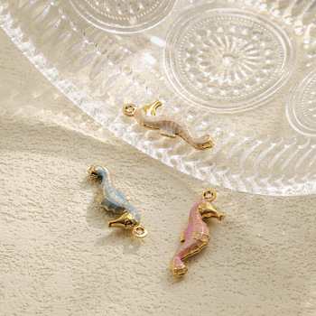 Colgante de caballito de mar hueco de acero inoxidable 304 encantos de esmalte de animales marinos