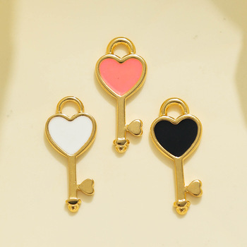 Encantos de llave de corazón esmaltados de acero inoxidable 304