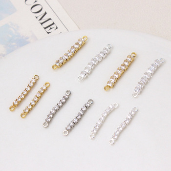 Conector de doble orificio de cadena extendida de diamante de circón con incrustaciones de garra chapada en oro de 20mm y 18 quilates